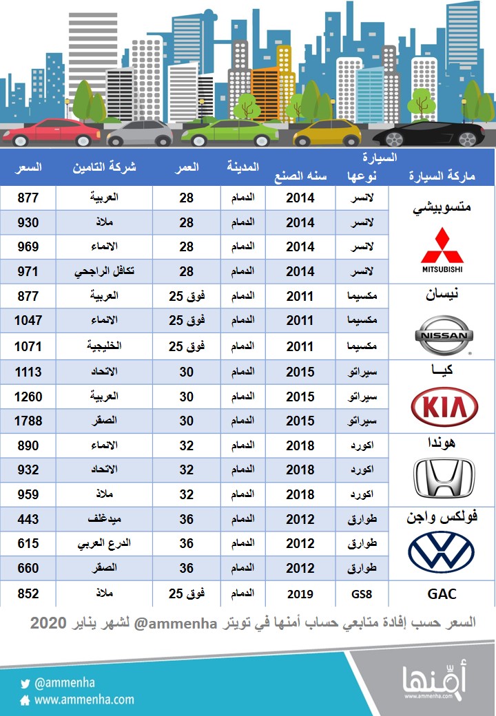اسعار التأمين الشامل للسيارات 2020.